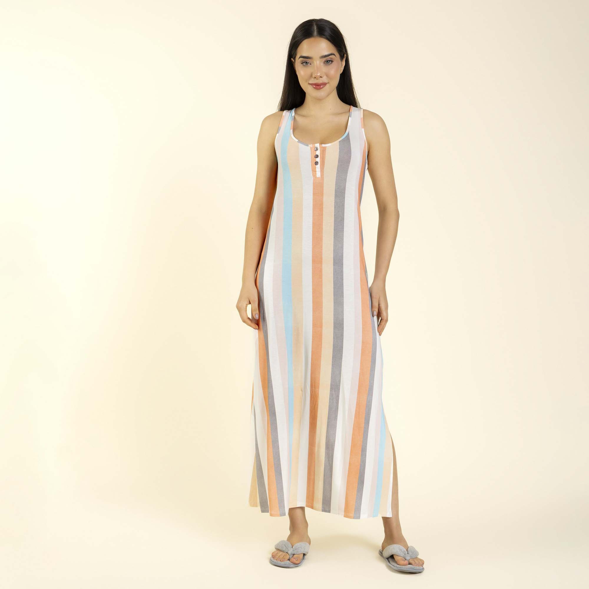 A Camisola Blend Strip, que faz parte da nossa Coleção Verão 2026, oferece frescor e fluidez. Com comprimento alongado, garante um visual elegante e descontraído para ficar em casa ou receber visitas.