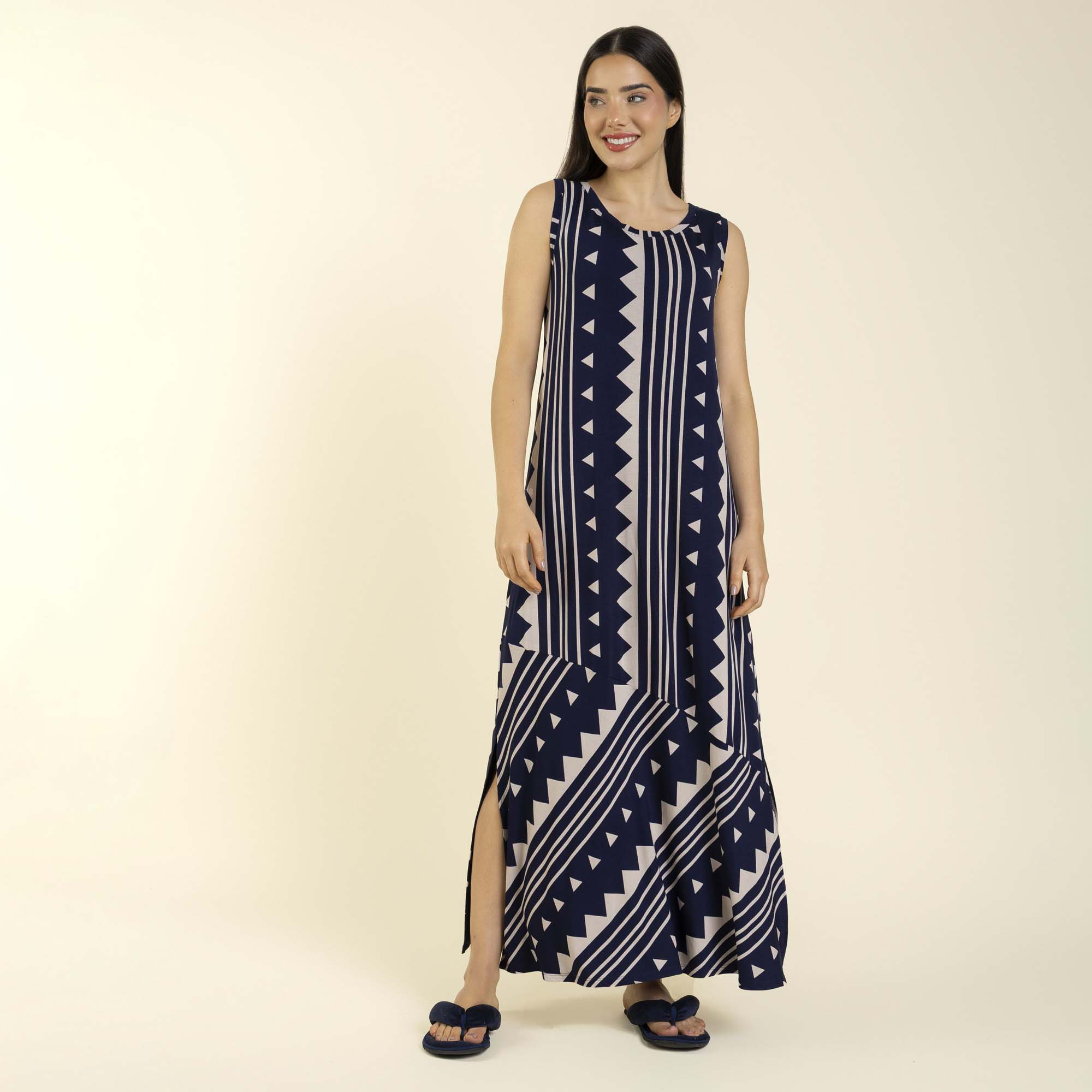 Em visco premium rongeant, é regata, apresenta estampa geométrica moderna, modelagem soltinha, fenda e caimento perfeito para valorizar cada detalhe.