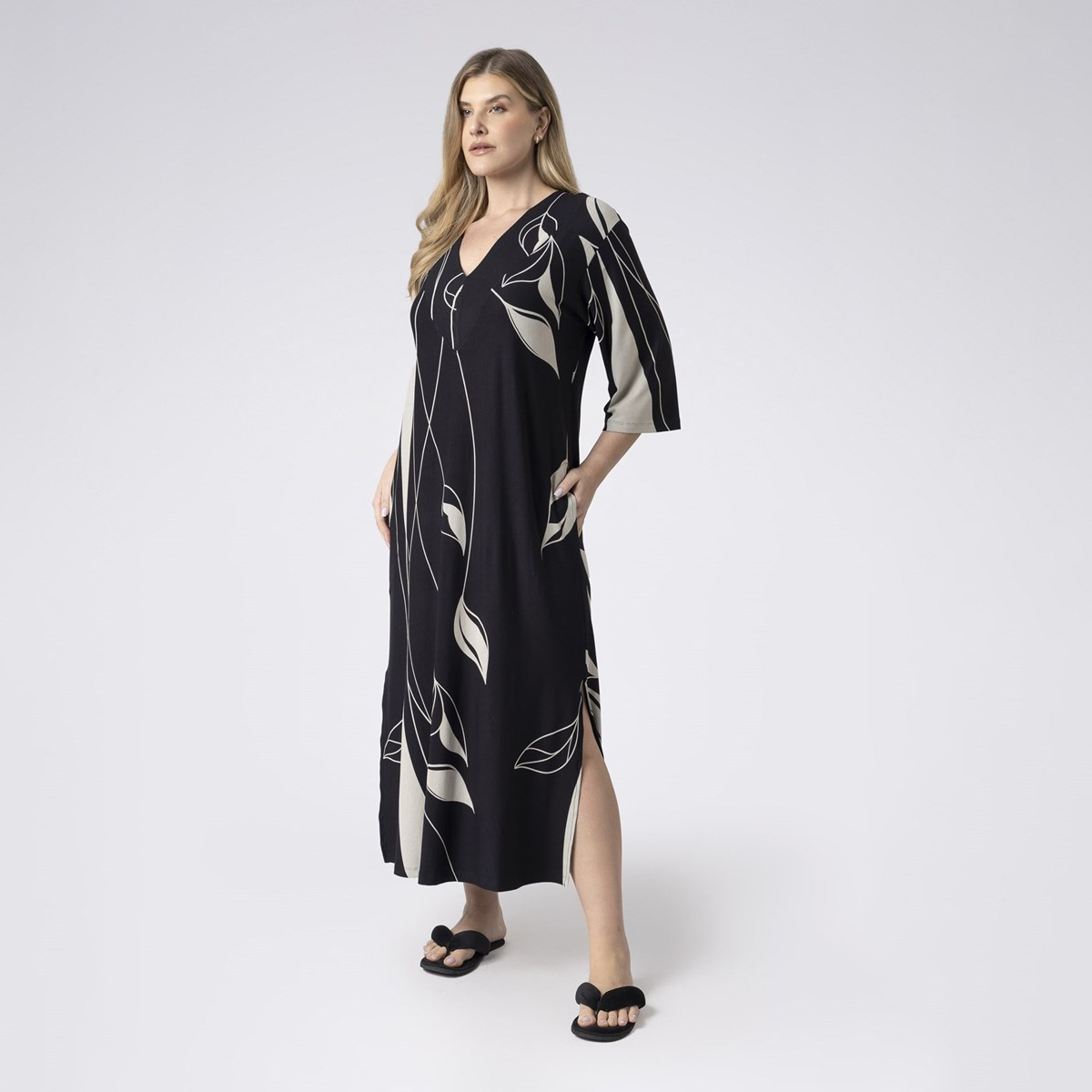 Kaftan Feminino Midi Plus Size Rongeant Flower