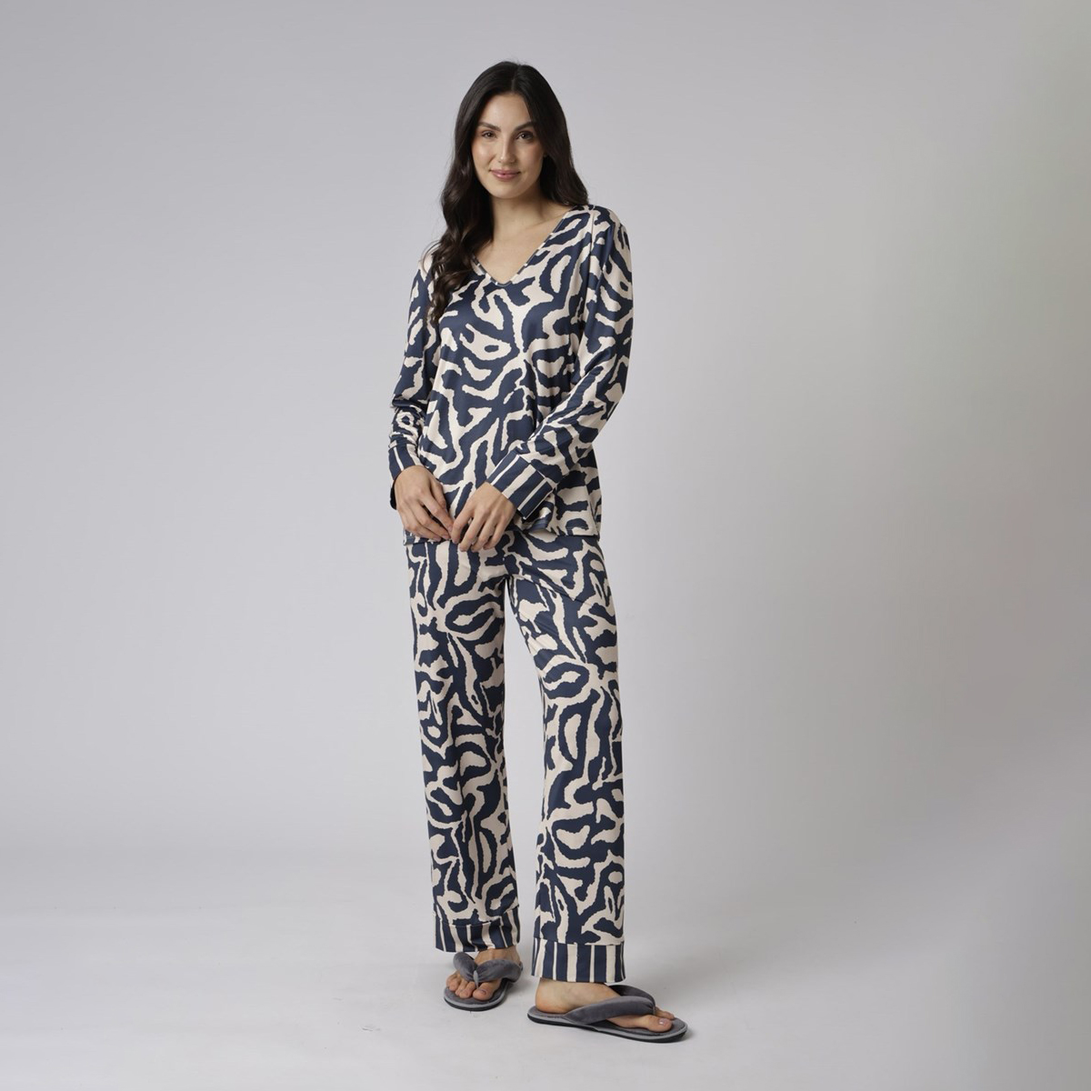 O Pijama Longo Orgânico, da Coleção Inverno 2026, é fluido, macio e ideal para quem busca conforto térmico leve aliado à elegância.
